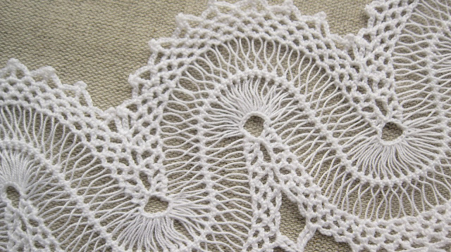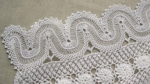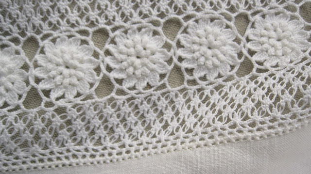 Renda de gancho (ou de ganchada) é mais uma renda que ando a revisitar. É de execução muito simples mas de grande efeito. Embora com vida própria, é quase sempre acompanhada de entremeios e aplicações em crochet, mas nunca passa despercebida.