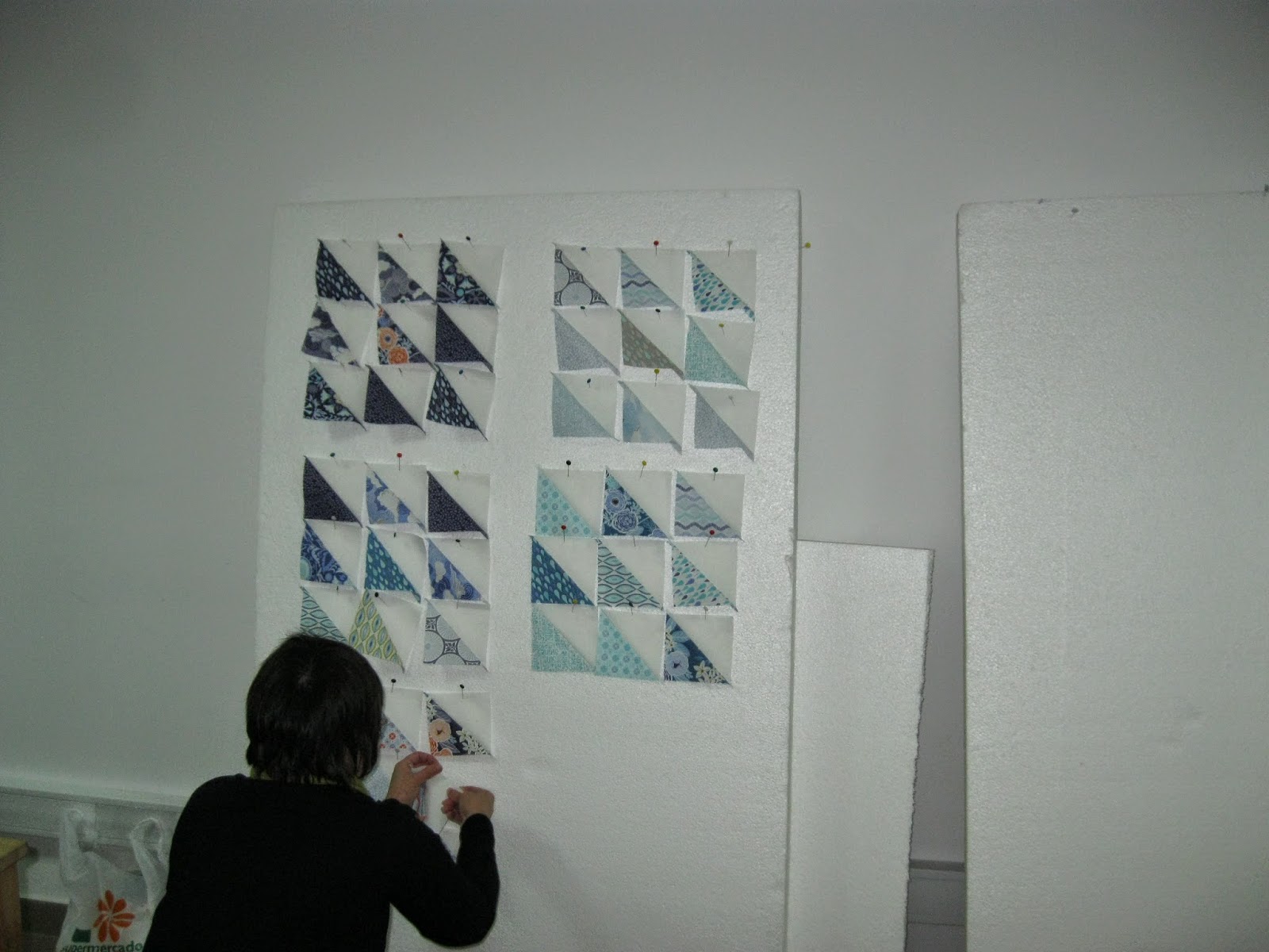 Uma vez por quinzena há uma aula de patchwork "fora de horas" na Dotquilts. É admirável o entusiasmo, a alegria e o empenho com que as alunas desta aula se dedicam aos seus trabalhos, depois de um dia de trabalho intenso.